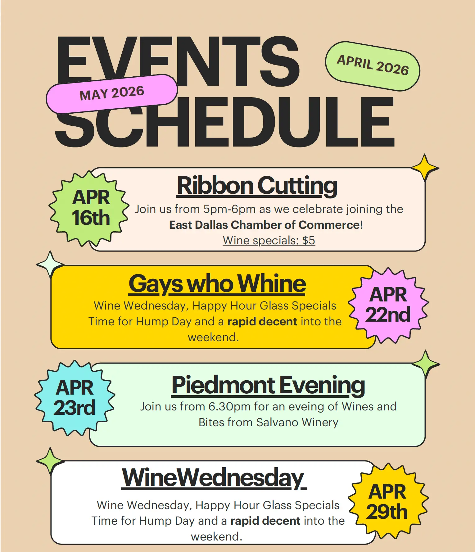 Located in the heart of East Dallas, we welcome guests from Knox-Henderson, West Village, Belmont Park, Lower Greenville, and beyond. If you’re searching for a wine bar with personality, a gift shop that doesn’t play it safe, or an art-driven retail experience in Dallas—you’ve arrived.