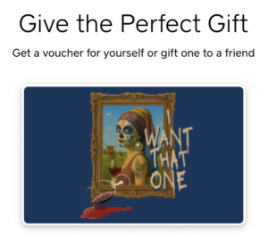 Gift Cards – Available as e-gift cards for those last-minute “oops, I forgot the holiday party” moments, or as “I Want That One” logo, physical gift cards for a more personal handoff.